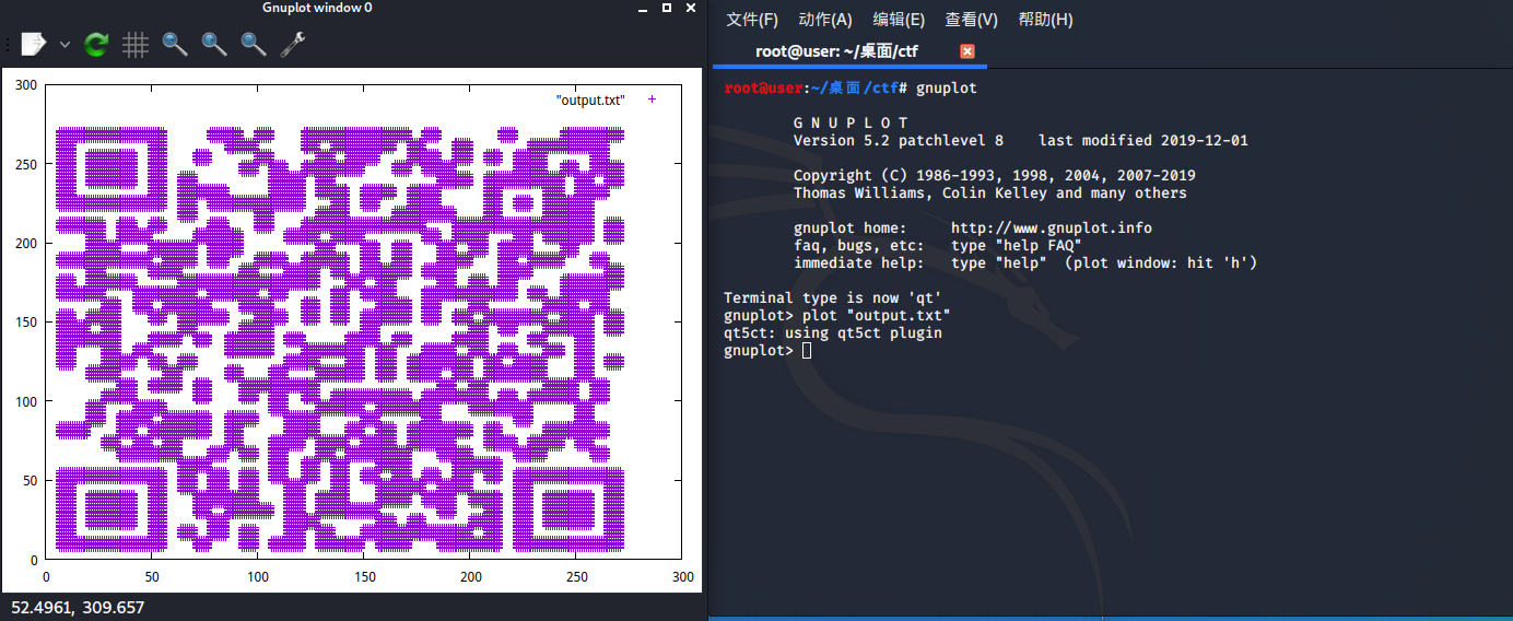 但是gnuplot识别的坐标为x y以空格作为分隔,所以用脚本让坐标变成gnuplot可以识别的坐标