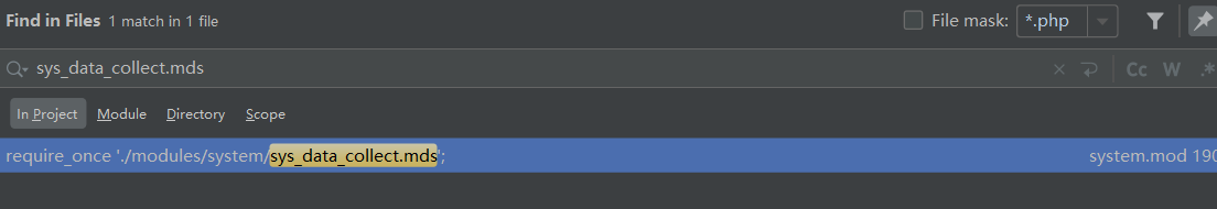 漏洞出现在sys_data_collect.mds这个文件,太菜了不知道为什么开发要这么写mds然后mod包含mds,然后php再引用mod文件,这里很明显file_name没有过滤直接拼接到目录下面,然后file_get_contents读取了文件再echo