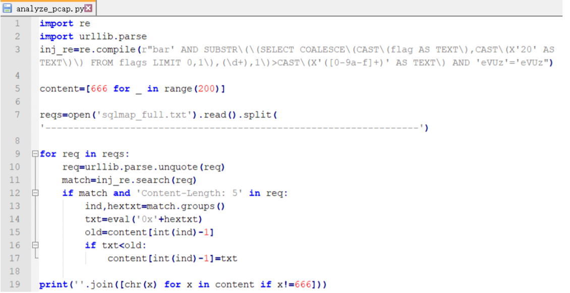 具体观察请求参数和响应,发现sqlmap在尝试盲注flags表的flag字段,请求使用了HEAD