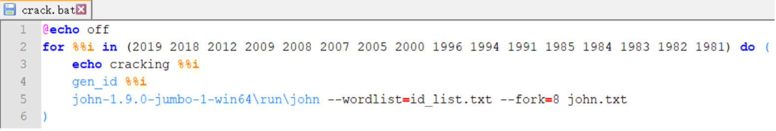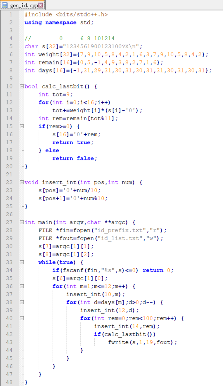 首先我们在网上搞一份身份证区号列表,存为id_prefix.txt,然后用C++写一个枚举合法身